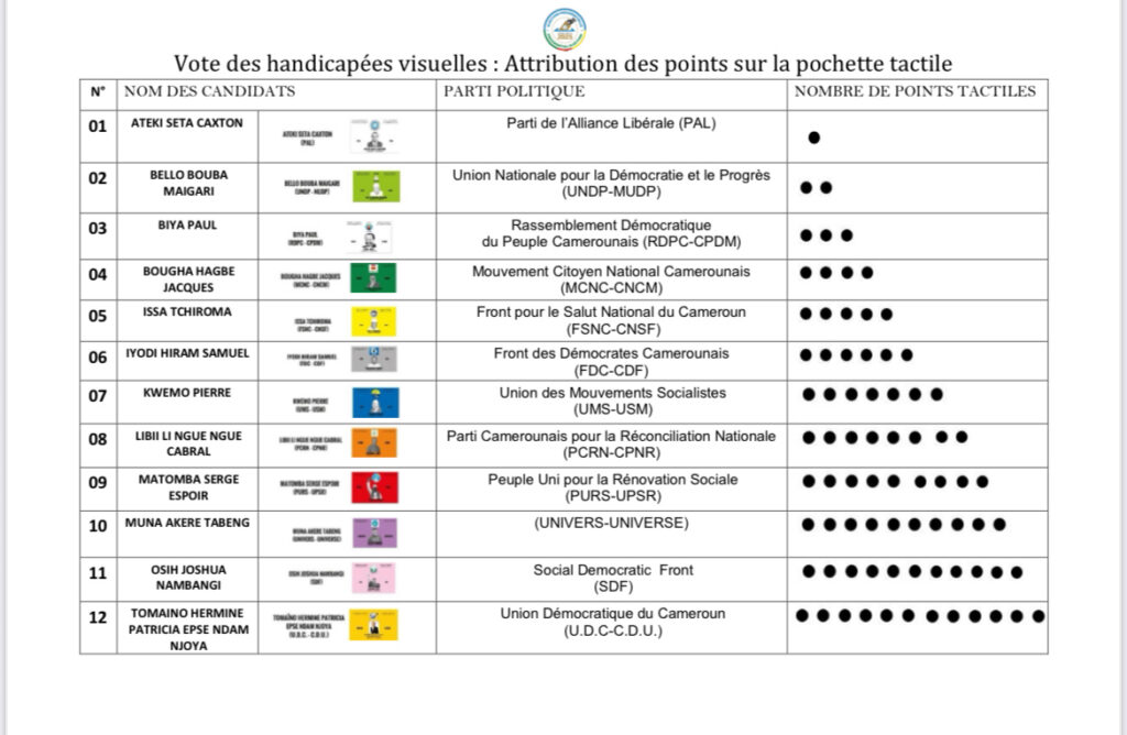 Cette initiative fait instinctivement penser à plus de transparence et d’equité, et c’est exactement ce qu’il fallait faire pour rendre ce scrutin accessible à tous. L’usage de la pochette tactile, conçue pour faciliter le vote a été la grande première. Des reliefs, inscriptions en braille, le tout bien expliqué, pour que les électeurs malvoyants puissent reconnaitre les candidats et leur symbole sans aucun problème.